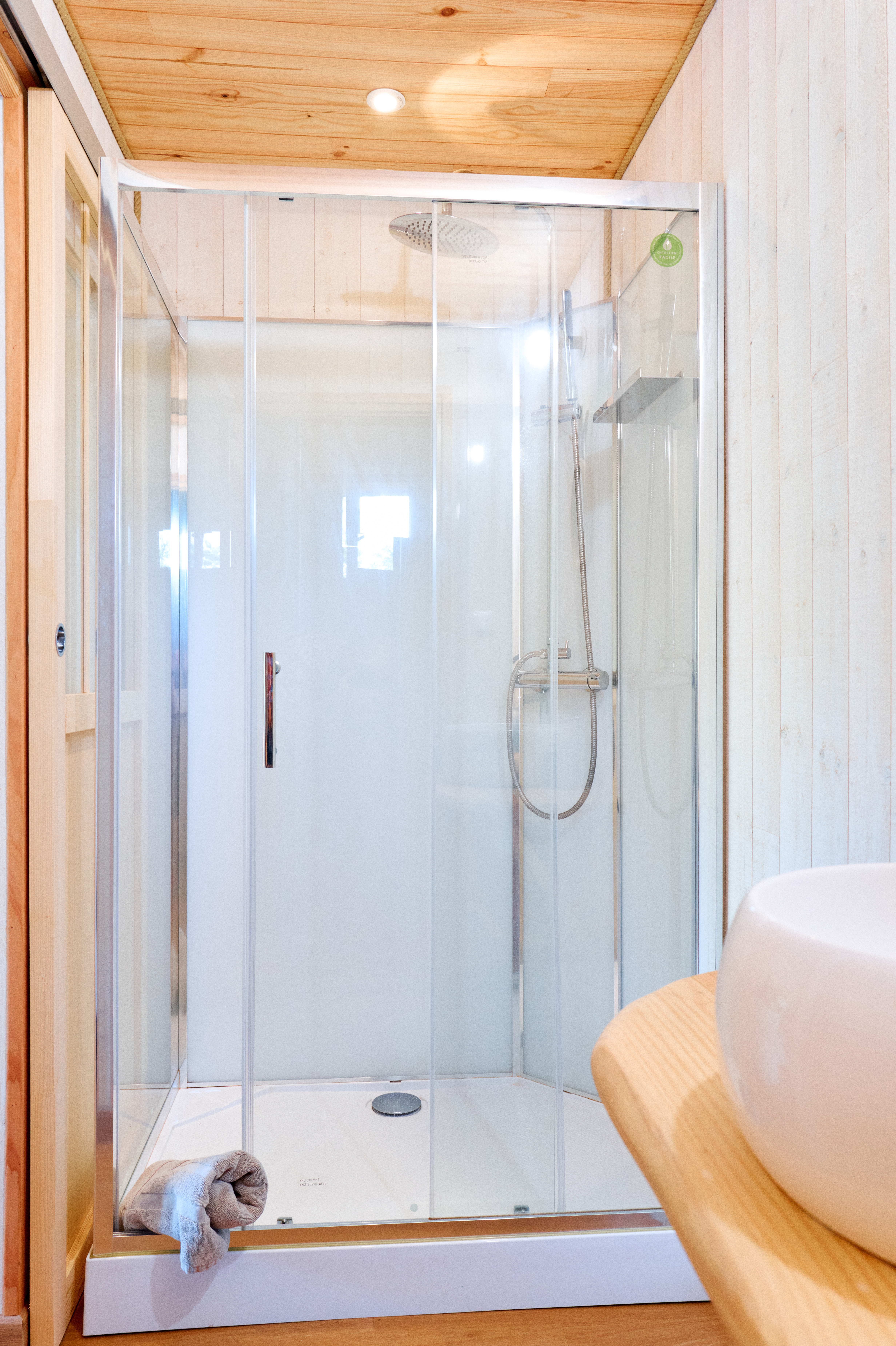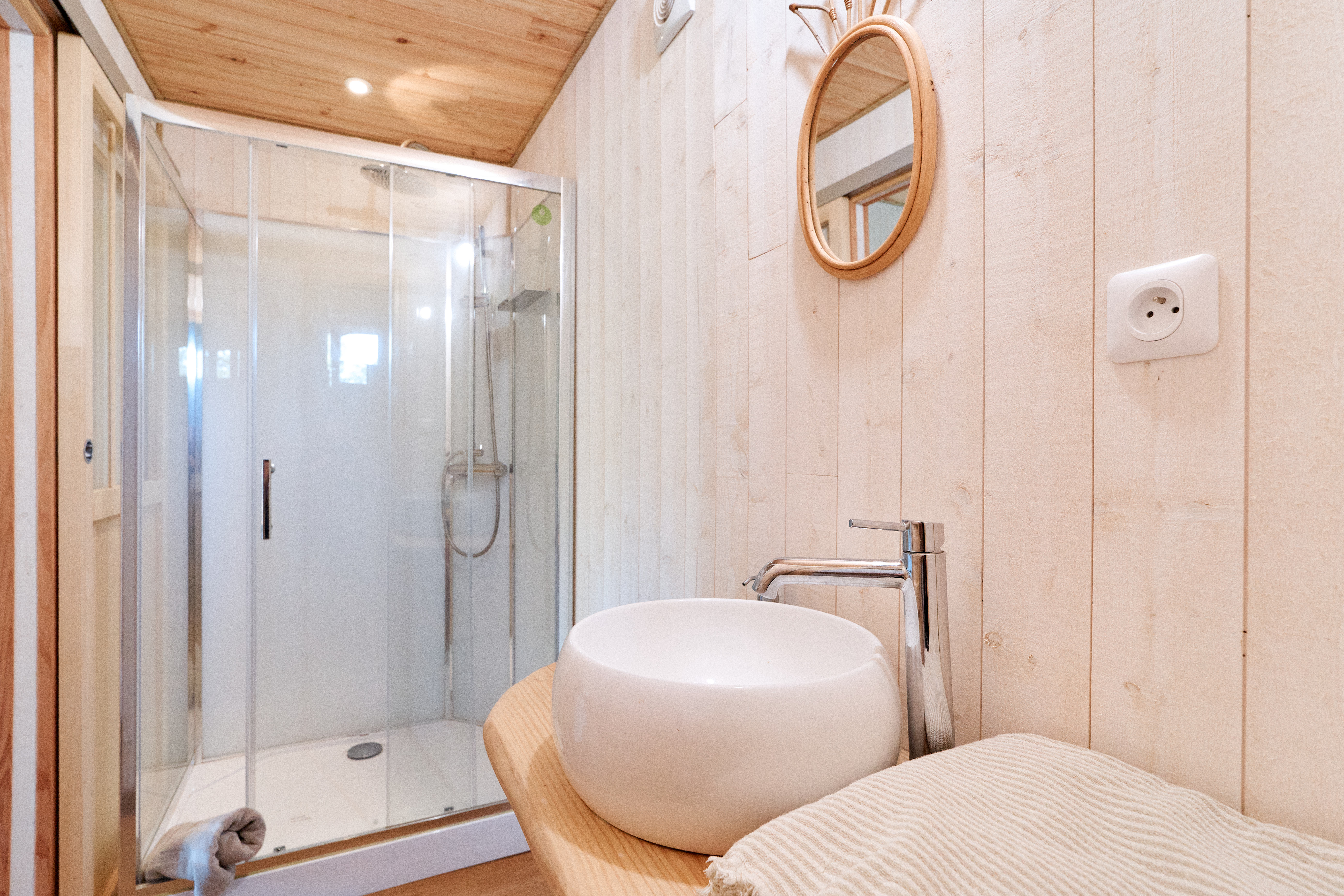 La cabane dispose également d’une salle de bain privative avec douche et toilettes, afin de profiter d’un confort complet au cœur de la nature.